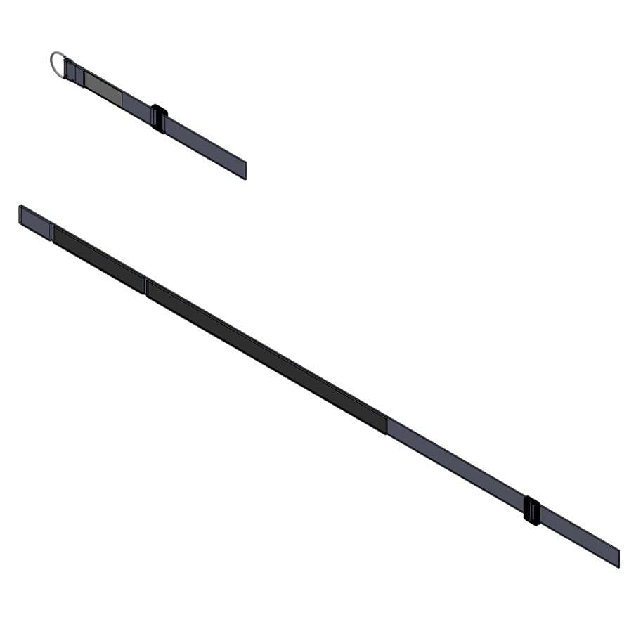 The Transmotion Stretcher Chair Leg Support Belt by Winco is a sturdy replacement accessory designed to provide secure leg support during patient transport. Made from durable nylon, this black belt ensures both safety and comfort, helping maintain proper positioning while using a stretcher chair.