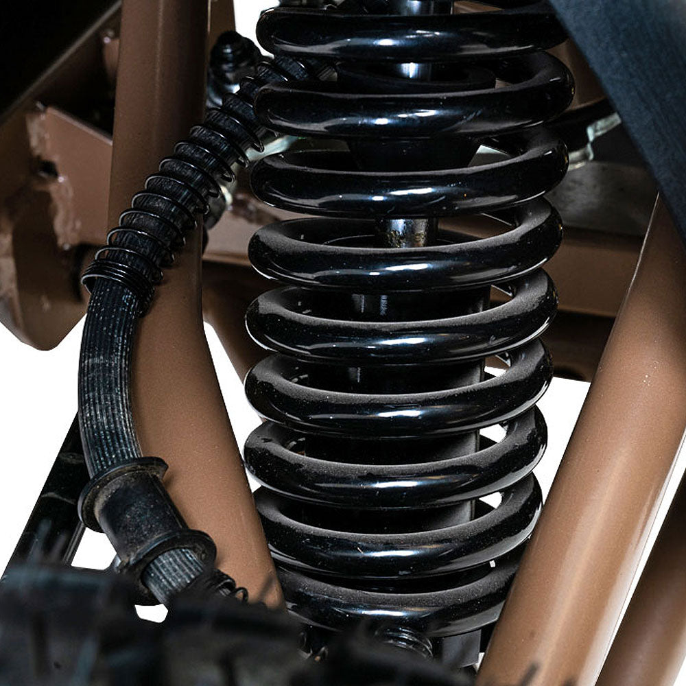 - Steering dampening system absorbs uncontrolled movements over rugged terrain designed to reduce fatigue by reducing the energy needed to control the handlebars