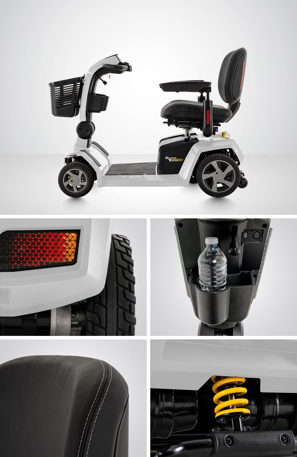Futuristic design and enhanced capabilities in the Zero Turn 10 mobility scooter start your imagination turning every time you grab the tiller handle.