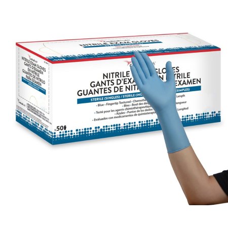 Exam Glove Flexam Sterile Single Nitrile Extended Cuff Length Textured Fingertips Blue Chemo Tested