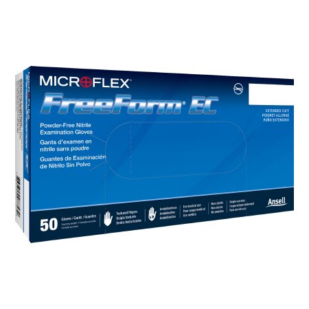 Exam Glove FreeForm EC NonSterile Nitrile Extended Cuff Length Textured Fingertips Blue Not Rated