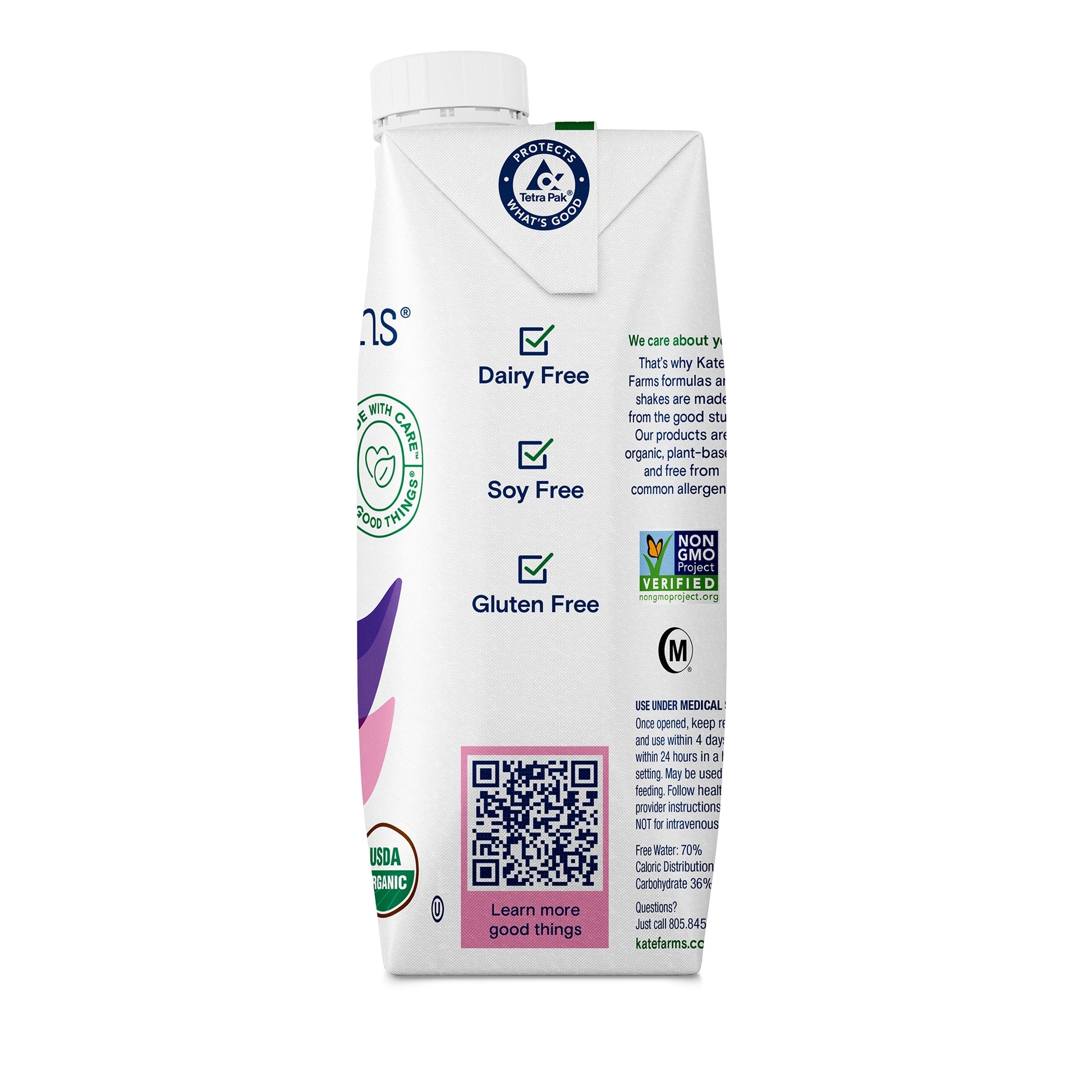 Kate Farms Peptide 1.5 Plain Liquid is a plant-based, organic, calorically-dense nutrition supplement designed for oral or tube feeding. Made with hydrolyzed pea protein and MCT oil, it supports gastrointestinal tolerance, weight gain, and immune health. Each 11 oz carton delivers essential vitamins and minerals while being free from common allergens. USDA organic, Non-GMO, gluten-free, vegan, kosher, and lactose-free, it’s suitable for pediatric and adult patients requiring sole-source or supplemental nutrition.