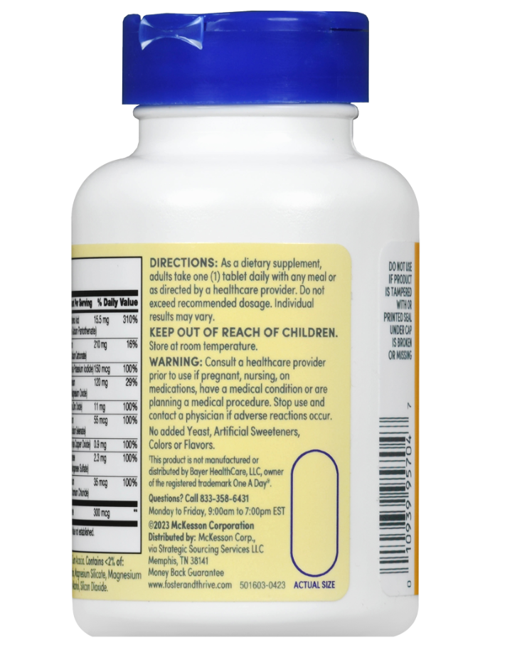 Support your health every day with Foster & Thrive™ One Daily Men’s Tablets, a complete multivitamin and multimineral supplement specially formulated to meet the nutritional needs of men. Packed with 22 essential vitamins and minerals, this once-daily tablet is designed to help promote energy, support immune function, and maintain overall wellness.
