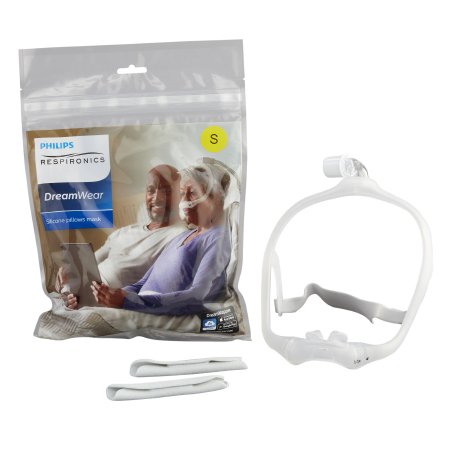The DreamWear Nasal Pillow CPAP Mask Kit by Respironics combines advanced comfort features with customizable sizing to provide effective sleep therapy for adults using CPAP. Whether you're a side, stomach, or back sleeper, this modular mask system adapts to your sleeping style with top-of-the-head tubing and soft silicone nasal pillows for a secure yet gentle seal.