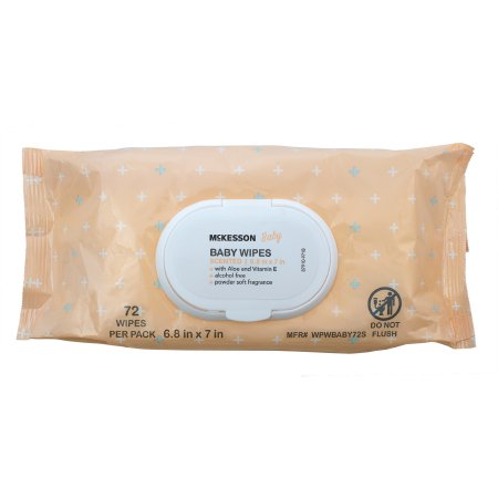 McKesson Baby Wipes provide gentle, effective cleansing for newborns and sensitive skin. Infused with aloe, chamomile extracts, and Vitamin E, these 99% water-based wipes help nourish and soothe delicate skin while providing a fresh, powder-soft fragrance. The pre-moistened, dermatologically tested formula is free from alcohol, parabens, dyes, and oils, ensuring a safe, pH-balanced cleanse. Designed for convenience, the flip-top lid helps keep wipes moist and ready for use.