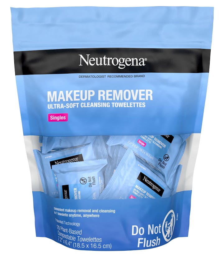 Neutrogena Makeup Remover Singles offer a gentle and effective way to cleanse your skin, removing dirt, oil, sunscreen, and even waterproof makeup. Each pre-moistened towelette is made with 100% biodegradable plant-based fibers, ensuring an eco-friendly skincare solution. Individually wrapped for freshness and ideal for travel, work, or on-the-go use.