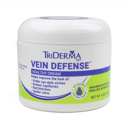 TriDerma® MD Vein Defense is a targeted skin correction cream designed to reduce the appearance of under-eye dark circles, broken capillaries, and spider veins on the face and body. Formulated with Aloe and Arnica Montana Flower Extract, it helps soothe skin, strengthen capillaries, and improve overall skin tone. Its gentle, unscented formula is safe for sensitive skin and provides visible results without harsh chemicals.