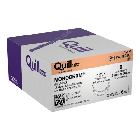 This absorbable suture with needle quill knotless tissue-closure device is made of monoderm polyglycolic acid and polycaprolactone. The 1/2 circle shape allows for better tissue closure with ease. Use this product for a safe and effective wound closure solution.