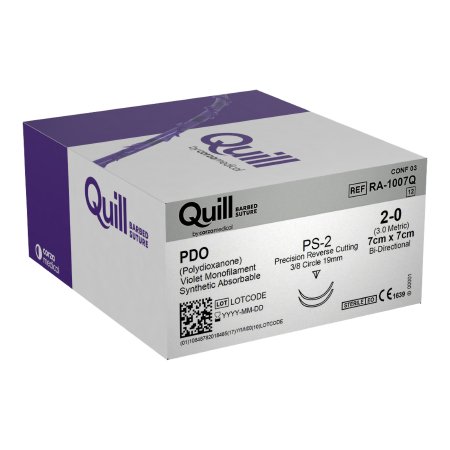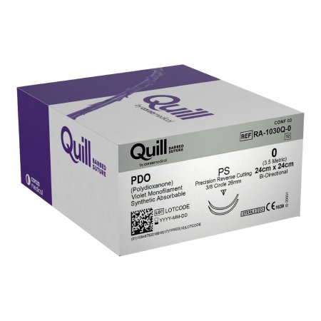 This absorbable suture with a Quill knotless tissue-closure device utilizes Polydioxanone material and a 3/8 circle needle. Its innovative design allows for efficient and secure closure of tissue, promoting faster healing and reducing scarring. This product is ideal for surgical procedures requiring precise and reliable wound closure.