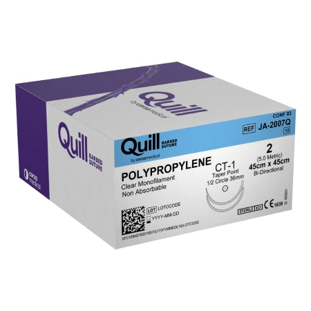 Our Nonabsorbable Suture with Needle Quill Knotless Tissue-Closure Device is a professional-grade product made from high-quality Polypropylene. Its 1/2 Circle Taper Point Needle, size 2, provides precise and efficient tissue closure with the added benefit of being barbed for a secure hold. Say goodbye to absorbed sutures that weaken over time!