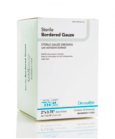 Adhesive Dressing DermaRite Bordered Gauze 6 X 6 Inch Square Sterile