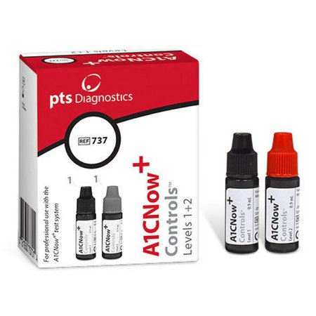 The A1CNow+ Controls Set by PTS Diagnostics provides reliable quality control for A1CNow HbA1c tests. Supplied in two levels, these controls ensure accuracy and consistency in monitoring Hemoglobin A1c testing performance.