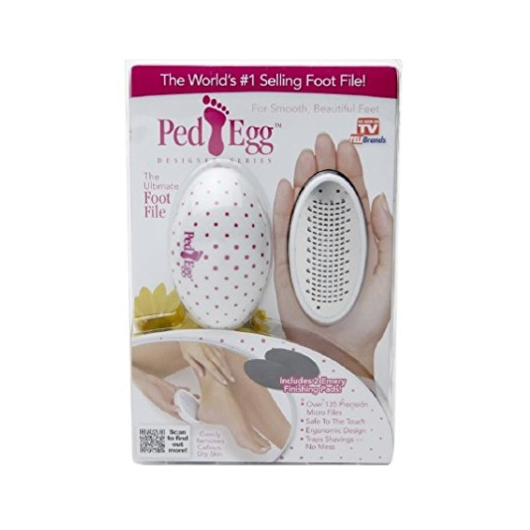 Indulge in the ultimate pampering experience with the Ped Egg Ultimate Pedicure Foot File. This professional-style foot file features precision micro-files for gentle callus removal, leaving your feet feeling baby soft and smooth. The ergonomic egg shape ensures a comfortable grip, while the mess-free design traps shavings inside. Complete with 2 bonus emery finishing pads in varying colors, this foot file is your go-to for salon-quality pedicures at home. Elevate your foot care routine with Ped Egg Ultimate – where precision meets perfection.